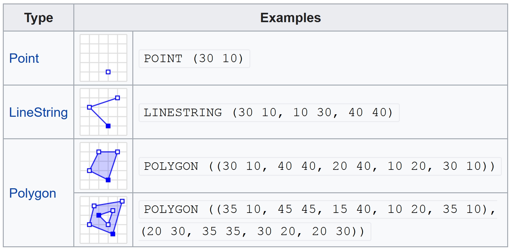 simple feature: feature with all geometric attributes described piecewise by straight line or planar interpolation between sets of points (no curves)