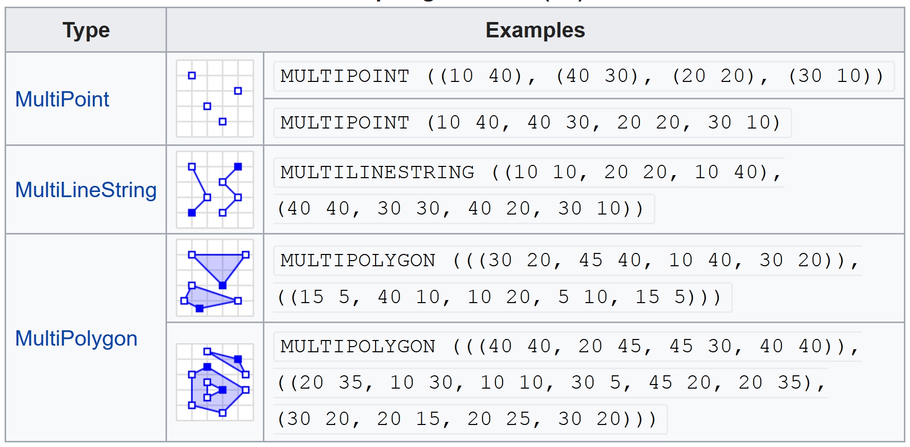 The commands below perform unary operations on simple feature geometry sets.