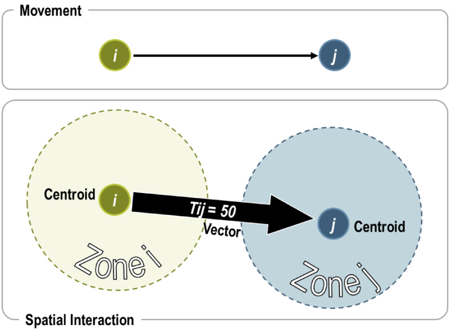Representing mobility as a spatial interaction involves several considerations: